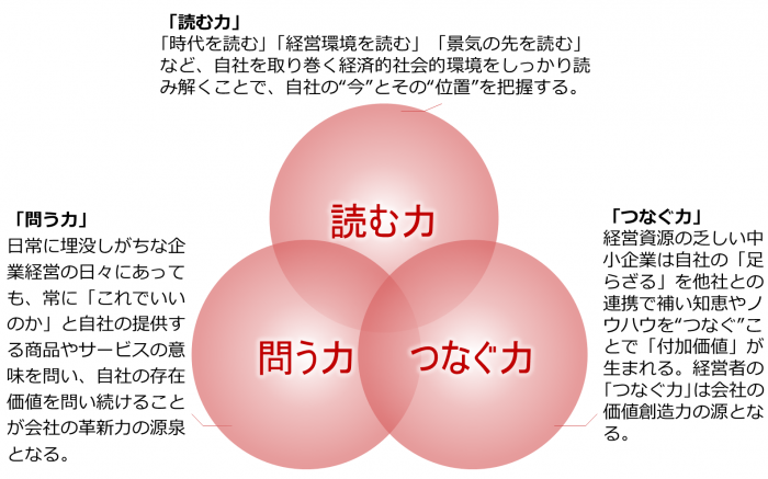 3.「読む力」・「問う力」・「つなぐ力」の経営に必要な3つの力を醸成する