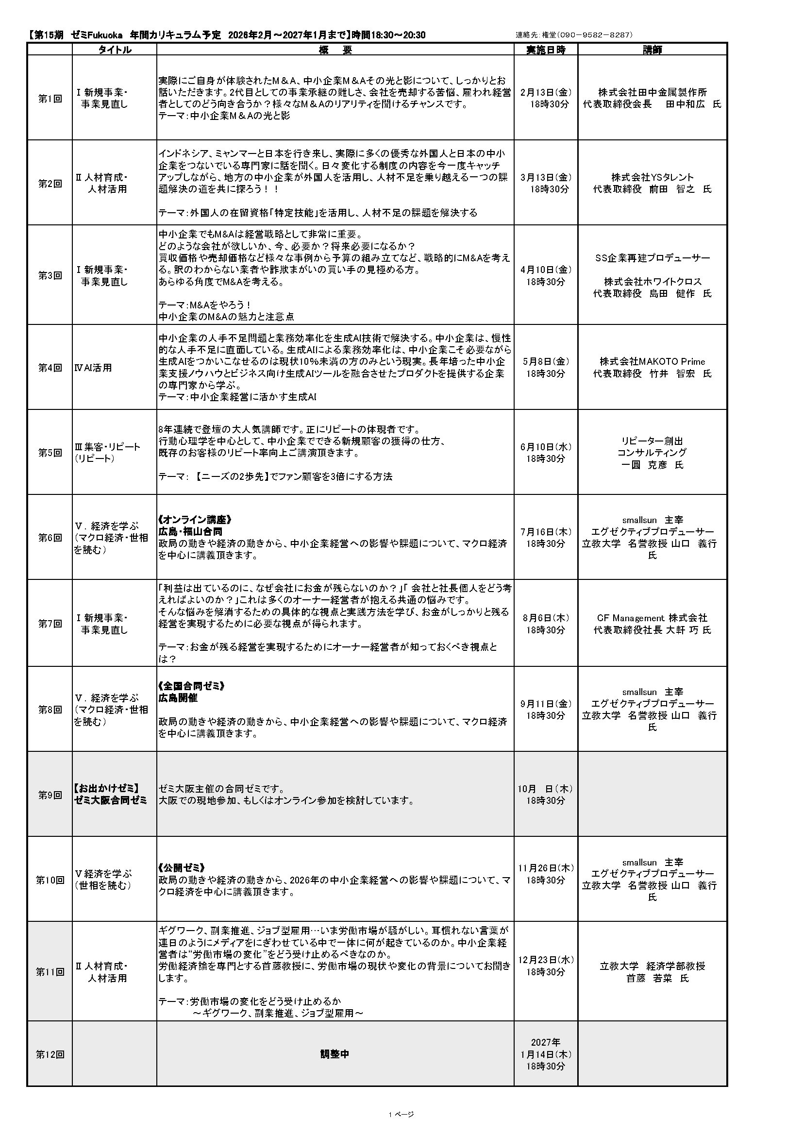 <SSゼミ福岡・第15期>2026年2月からスタート!