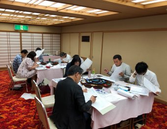 参加者同士の自己紹介、合宿で持って帰りたい事を含めて話をした後、山内プロデューサーより、マネジメントゲームの説明を受けながら第1期が開始。