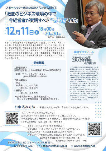 SSゼミ岐阜・8期・第12回 <公開ゼミ>「激変のビジネス環境の中で、今経営者が実践すべき思考法」