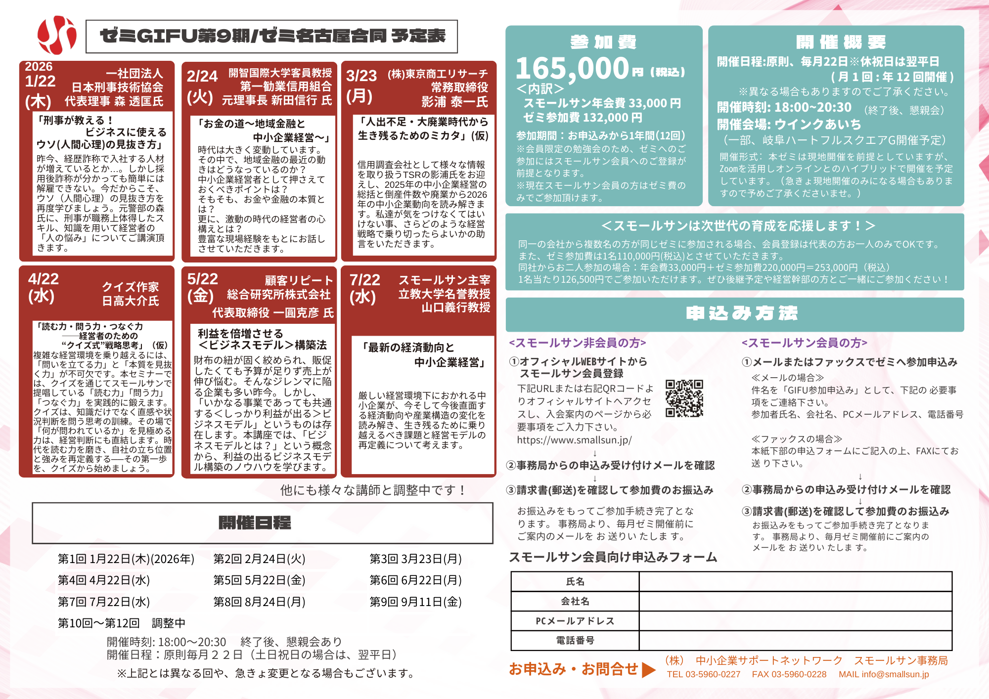 2026年1月22日(木)より、スモールサン会員限定の経営者勉強会【ゼミGIFU】第9期がスタートします!