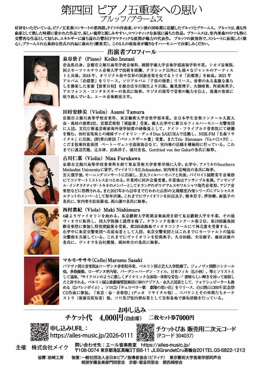 【第四回 ピアノ五重奏への思い ブルッフ/ブラームス】