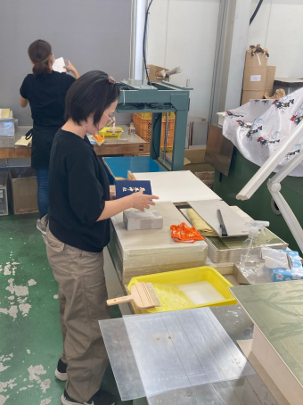 ゼミメンバー:実際に刷毛とのりで手作業でやっているんですね。