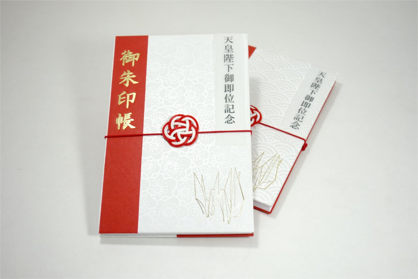 野崎:取扱商品としては、御朱印帳、書画用紙、和本、経本、軸装、額装、扇子・団扇、色紙・短冊と多岐にわたります。実際に当社で製造しているものの多くは御朱印帳ですね。2016年に私が代表になり、2018年にはHPを新しく立ち上げました。そこから問い合わせもたくさん来るようになったんですが、それというのも2019年は平成から令和に変わるタイミングだったんですね。それで社員から「これをビジネスチャンスとして捉えませんか?」と意見が上がってきて、「それええな、やろう!」ということで天皇陛下ご即位記念の御朱印帳を作ることを企画しました。紅白でおめでたいデザインのものを作ったところものすごい反響を頂きました。通常は有名な寺社さんでも年間販売数1万冊を超えるかなぐらいのところが、半年で1万冊を超える注文を頂いたんです。で、色々と試行錯誤をしたおかげで良い結果につながっています。